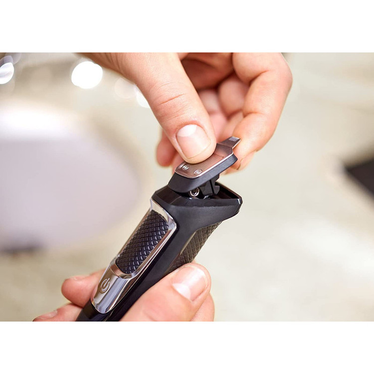 ماشین اصلاح فیلیپس مدل MG3750/60 یکی از بالاترین مدلهای سری 3000 فیلیپس که سری اقتصادی این برند است میباشد . کیفیت ساخت آن مانند سایر مدلهای این سری در رده قیمتی خود کاملا قابل قبول میباشد بدنه طراحی زیبا و آرگونومیکی دارد و از موتور پیشرفته High-Powered Motor فیلیپس خدر این دستگاه استفاده شده است که نسبت به سایر مدلهای سری 3000 قدرت بیشتری دارد و نیز لرزش و صدای کمتری دارد. تیغه دستگاه بسیار با کیفیت میباشد و براحتی از بدنه جدا میشود و قابل شستشو نیز میباشد بسته بندی این مدل شامل 13 قطعه برای اصلاح موی سر و صورت میباشد شامل: ماشین اصلاح ، سری اصلی ، سری مخصوص کنج و زاویا ، سری موزن گوش و بینی ، کاور نگهداری ،7 عدد شانه در سایزهای مختلف برای موی سر، صورت و زیر گردن . این مدل از اکسسوریهای کافی برای اصلاح بی دردسر برخوردار میباشد زمان شارژ دستگاه 8 ساعت میباشد و زمان استفاده از آن 60 دقیقه میباشد. اگر بدنبال ماشین اصلاح صفرزن هستید این مدل پیشنهاد نمیشود چون اندازه اصلاح تیغه اصلی حدود 0.5 میلی متر میباشد و کاملا مناسب ته ریش در سایزهای مختلف میباشد و تیغه خود تیزشونده میباشد که نیازی به روغن کاری ندارد. . این مدل از محصولات نورلکو فیلیپس میباشد که از سطح کیفی بالاتری نسبت به مدلهای معمول برخوردار هستند